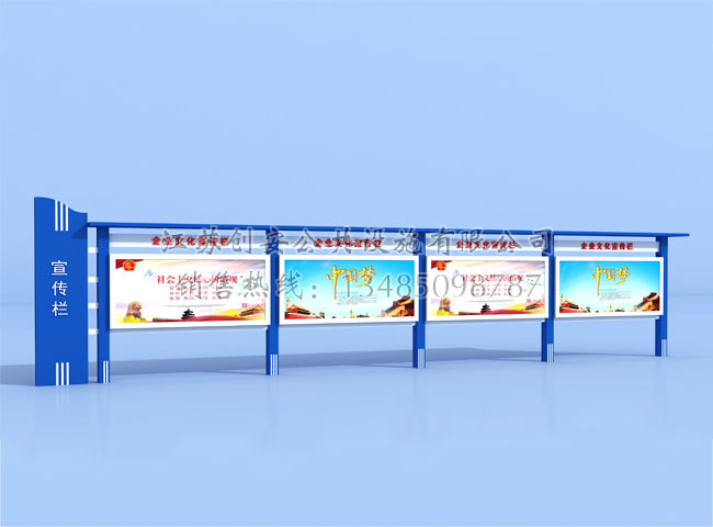 公司技術力量雄厚,工藝流程科學,質量檢測體系完善,采用較好的原材料,嚴把質量關,本著“誠信為本、務實創新、客戶至上”的經營理念頑強拼搏,銳意進取,握準時代脈搏,產品不斷競進提質、推陳出新。產品銷售二百多個多個城市,我公司還可根據客戶的要求,訂做生產不同規格的款式宣傳欄,公交候車亭,法治宣傳欄,消防宣傳欄,部隊宣傳欄,校園文化宣傳欄等。目前與國內眾多政府單位、部隊、廣告公司建立了長期穩定的合作關系,并得到了客戶的高度認可。我們不僅僅為客戶提供高質量的產品,更有新穎的創意和較好的售后服務,贏得了廣大新老客戶的一致好評。